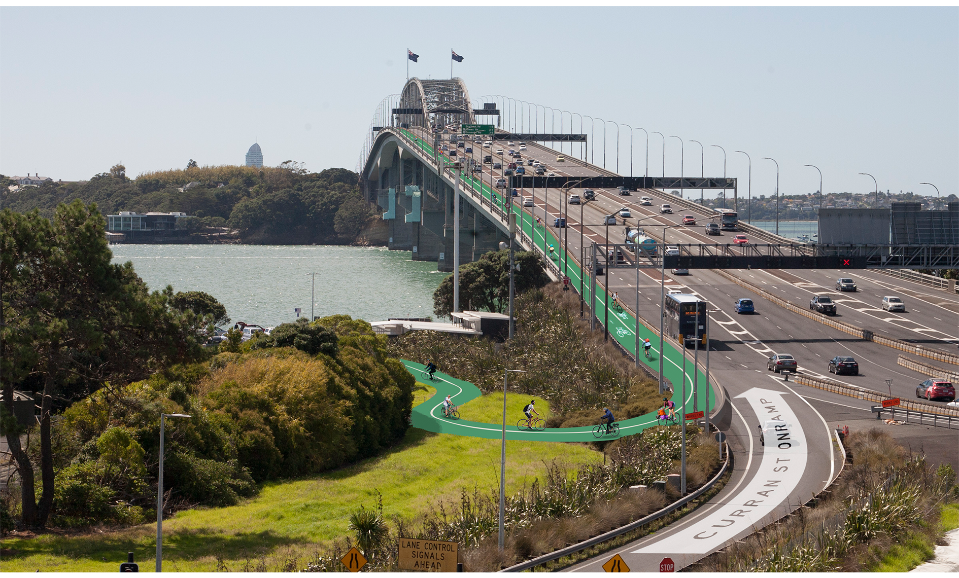 Above: The proposed, and no-longer viable, pathway across the Auckland Harbour Bridge (source: Waka Kotahi NZ Transport Agency, 2019)