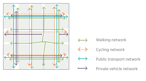 Permeability refers to the directness of links and the density of connections in a transport network. Relative directness is about making the route for active modes more direct - and therefore easier - than driving.