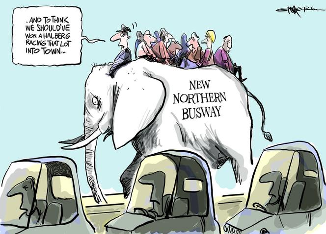 NZ Herald Cartoon published on 14 Feb 2008, just after the opening of the northern busway