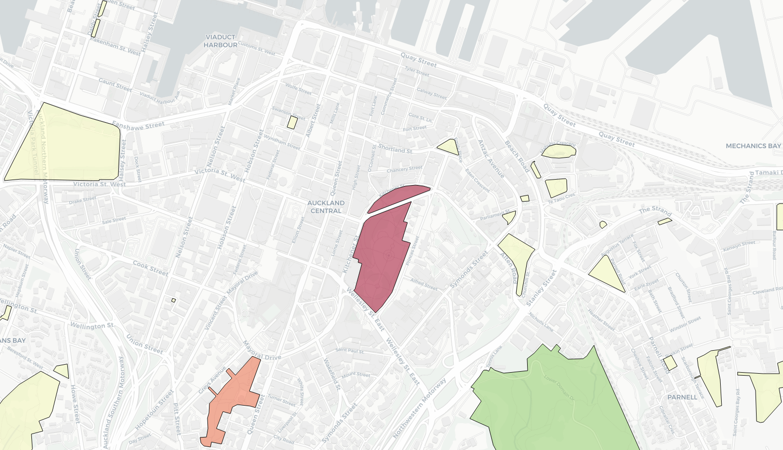 For those who don't have a microscope handy - that is part of a central Auckland suburb (which is likely to intensify in response to the NPS-UD) that only has access to 0.9 hectares of parks within a 10 minute walk! For context, a rugby field is 0.7 hectares (excluding the dead-ball line, any sideline supporter space, and room for Damian McKenzie to clear a 50+ metre kick). That's not to say the nearly 500 residents of this area have that 0.9 hectares to themselves either, they'd be competing with everyone else from the surrounding streets.