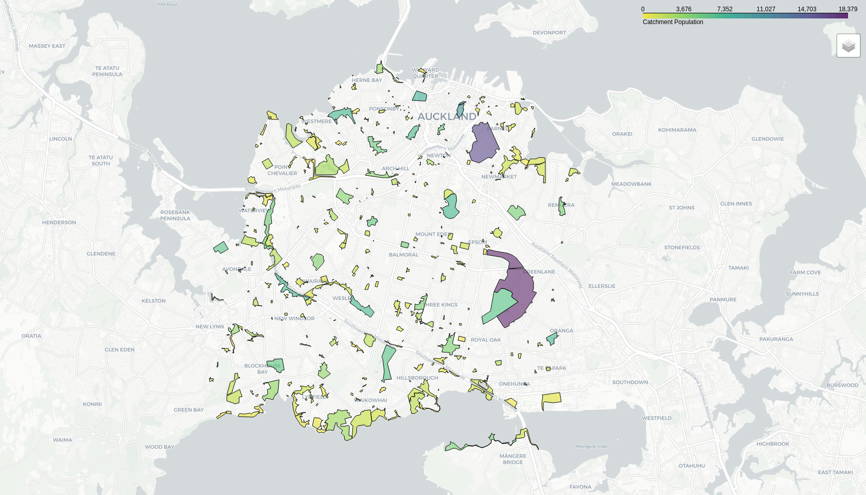 There are many avenues to explore with this, including (but not limited to) cycling and driving catchments, exploring access to sports fields or playgrounds, investigating latent capacity under the unitary plan and future population projections, and much much more.