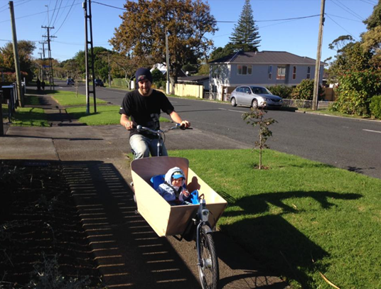 It was quite the exercise transporting the bakfiets back as oversized luggage, but it was surprisingly the cheapest way. The stopover in Shanghai was particularly tricky because I had to collect my luggage, including the bike, and get to the next gate via several elevator rides. The wooden box the bike came with was too bulky for the flight, so I took dimensions and then my husband constructed a new box out of marine ply back in NZ.