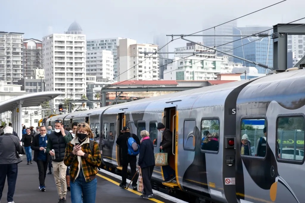 Passengers disembark from Te Huia at the Strand in Auckland.